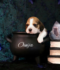 Ophelia is co-bred and co-owned with Bev Davies of Waskasoo beagles who was kind enough to trust two younguns with her lovely girl Demi and her beautiful pedigree. Ophelia was our pick of litter to stay here at Kvell thanks to her lovely balance and elegance. She established herself pretty early on as front runner in the litter and stayed consistent from week to week. She has already managed to get both her majors toward her CH